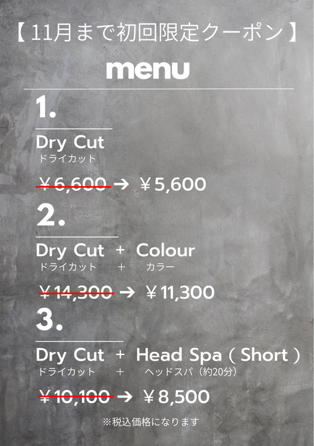 ドライカット+カラーのメニューにトライアルホームケア付き